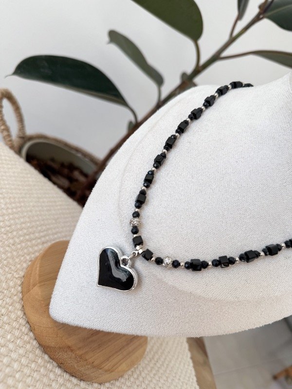 Collar tipo gargantilla confeccionado con delicados cristalitos de roca y un encantador dije en forma de corazón. Su diseño sutil y luminoso lo convierte en la pieza perfecta para realzar camisas abiertas o prendas escotadas, aportando un toque de elegancia y feminidad. Ideal para lucir solo o combinado con otros collares, creando capas con estilo y personalidad. Un accesorio versátil que suma luz y encanto a cualquier look, tanto de día como de noche.