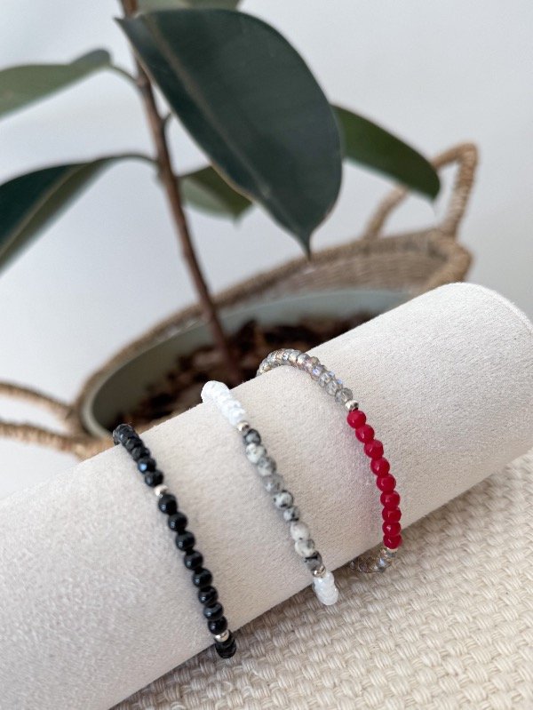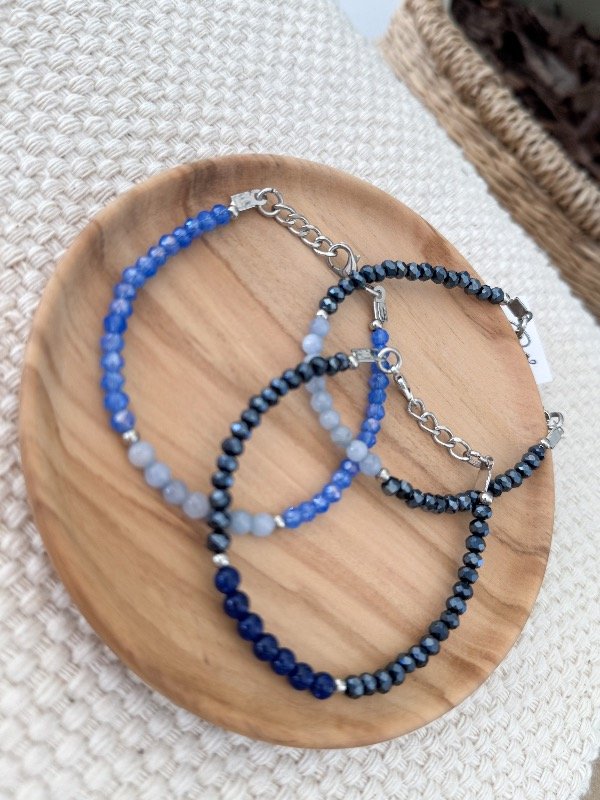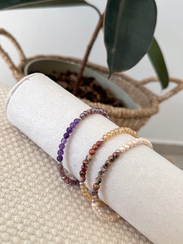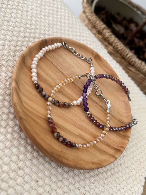 Pulsera delicada y versátil, compuesta por cristalitos de roca que aportan un brillo sutil y elegante. Incluye una fina cadena que permite regular el largo para un ajuste perfecto. Ideal para usar sola o combinar con otras pulseras, es ese detalle simple pero encantador que realza cualquier look.