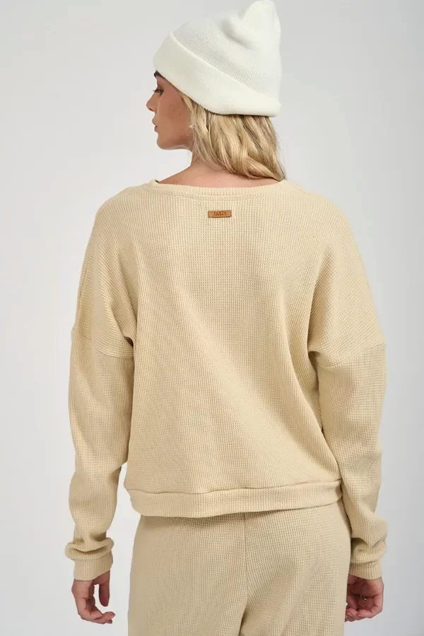 Buzo confeccionado en waffle de algodón, suave y respirable, ideal para usar todo el año. De diseño simple y funcional, con cuello redondo y manga caída que aporta un calce relajado y cómodo. Un básico infaltable en cualquier guardarropa, versátil para combinar con distintos estilos y ocasiones.