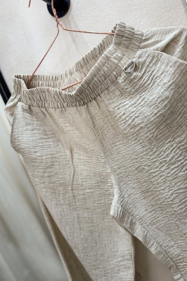 Pantalón Cascarilla confeccionado en una tela fresca y de textura rústica, pensado para acompañarte con comodidad en los días calurosos. Su diseño de calce relajado y fluido aporta movimiento y liviandad, sin perder presencia. Es una prenda versátil y funcional, ideal para el uso diario o para armar un conjunto más trabajado. Combina a la perfección con la camisa estilo chaqueta del mismo textil, creando un look fresco, natural y con carácter.