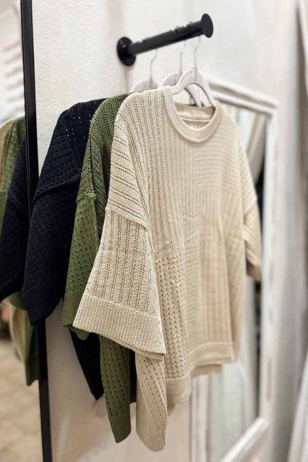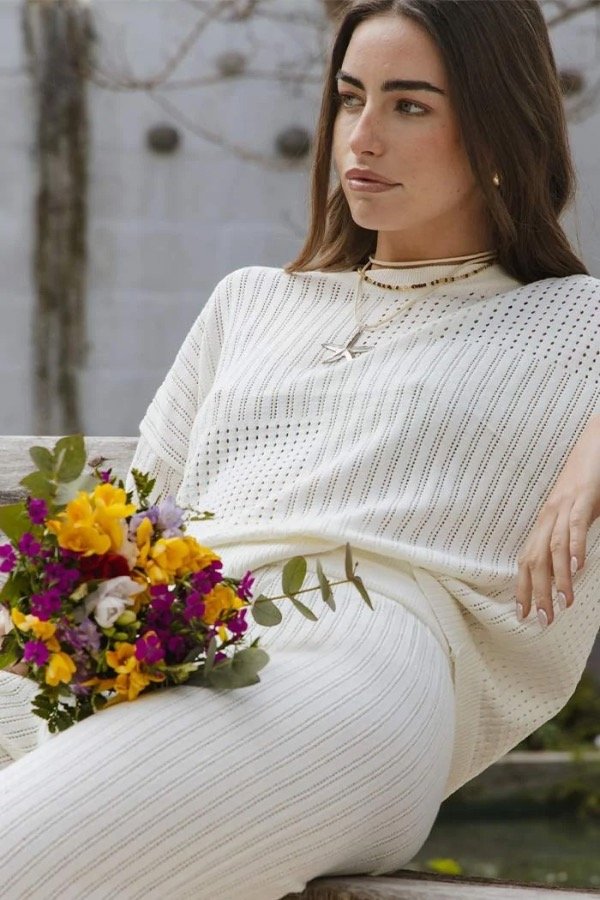 Con cuello redondo y corte cuadrado, ofrece un calce moderno y relajado que se adapta a distintos tipos de cuerpo. Su diseño minimalista y tejido con aire artesanal la convierte en una prenda versátil y femenina, perfecta para usar sola o en capas.