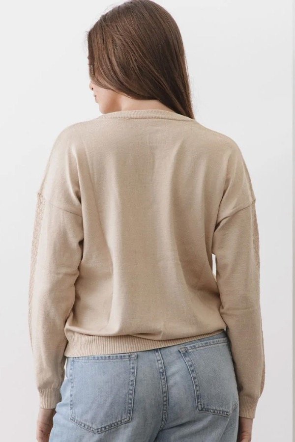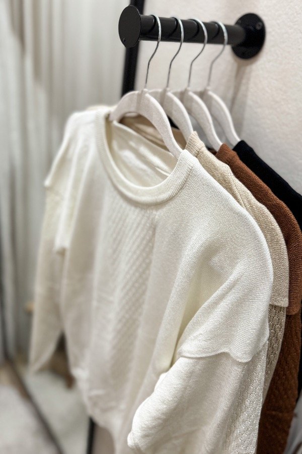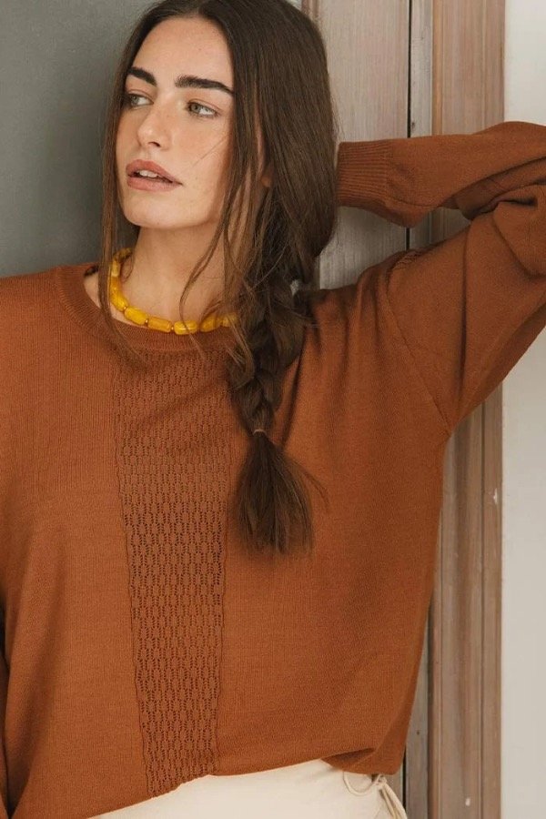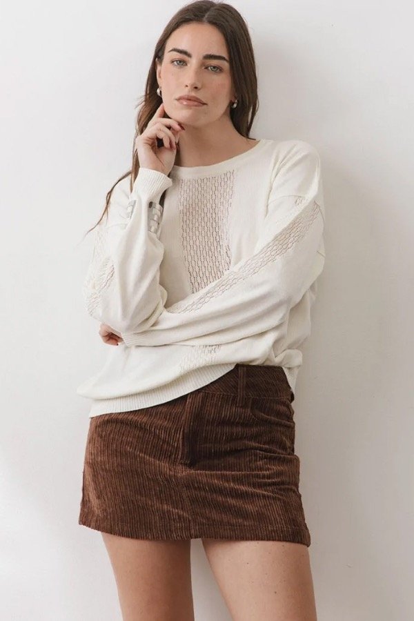 Liviano, delicado y con el detalle justo. Este suéter básico de hilo y licra en tonos neutros es la prenda ideal para darle la bienvenida al verano con estilo. Su diseño de cuello redondo y calado distintivo en el frente lo convierte en una pieza única, combinando sencillez con un toque de sofisticación.