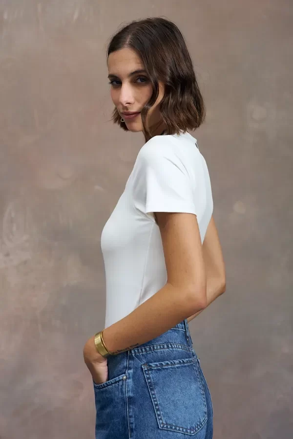 Este body confeccionado en lycra negra es una prenda esencial en cualquier guardarropa. Su color clásico y versátil lo convierte en un básico atemporal, ideal para combinar en cualquier temporada. Diseñado con un elegante escote cuadrado y mangas cortas, ofrece un estilo moderno y favorecedor.