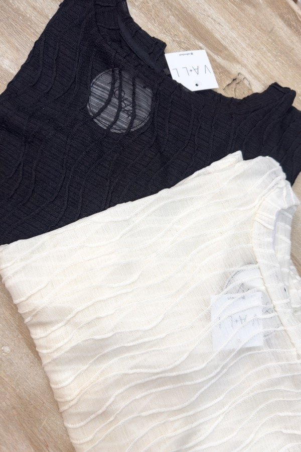 Tramado de textura súper suave al tacto, que aporta un efecto visual único y delicado. Su corte oversize y cuello redondo la hacen cómoda y fácil de combinar, ideal para looks con capas o para jugar con transparencias.